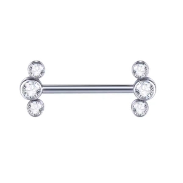 Piercing para Mamilos Barbell Reto Titânio com Zircônias Tripla
